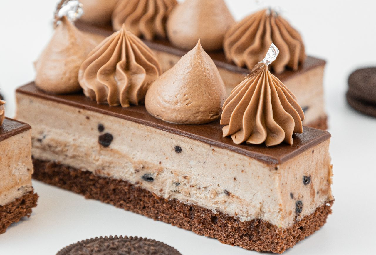 крем мусс, второй - крем муслин и вишневая начинка.
