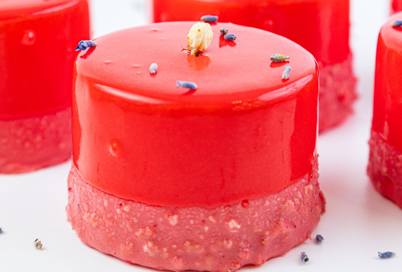 крем чиз на маскарпоне и малиновый конфетюр.